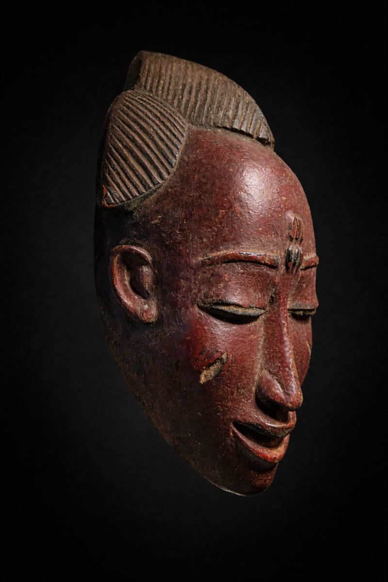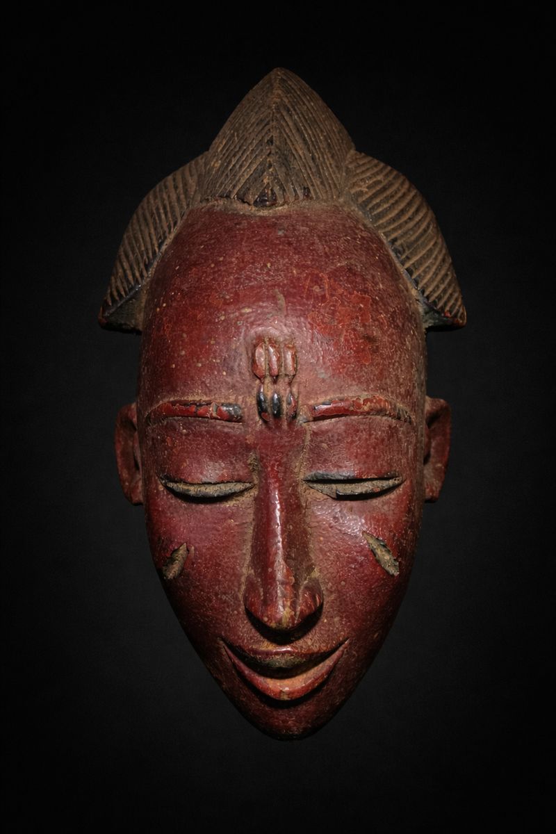 Masque de Portrait Baoulé (Mblo) – Côte d’Ivoire – Patine Rouge & Sculpture Fine